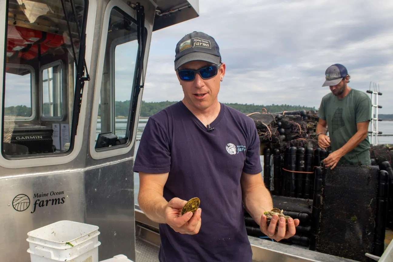 On a sunny, 85-degree day in August of 2025, some 9,300 oysters were loaded into ice-filled containers on southern Maine’s Casco Bay. The boat shuttling them from the warm, shallow waters of Recompense Cove to the marina two miles away hummed quietly. Notably missing: the roar of an engine and the smell of diesel.