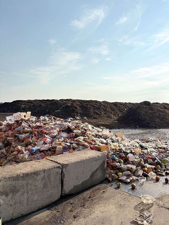 “We never know what might be showing up,” he says. “Our compost starts out very wet because the food waste is very wet. Over the years we’ve learned what kind of pile we need to have to get the right blend of carbon and nitrogen ratios.”