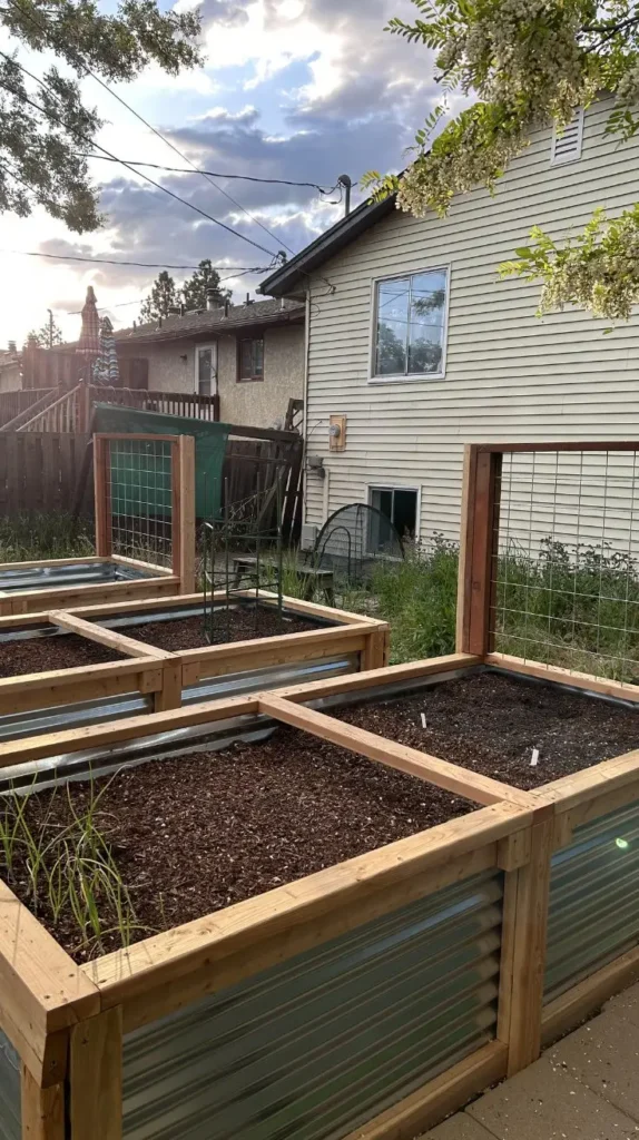 Multiple raised beds can be arranged neatly across the yard to create an organized vegetable garden. Small walkways between beds allow easy access while working with plants. Over time, these structures produce fresh food while also adding rustic charm to the garden landscape.