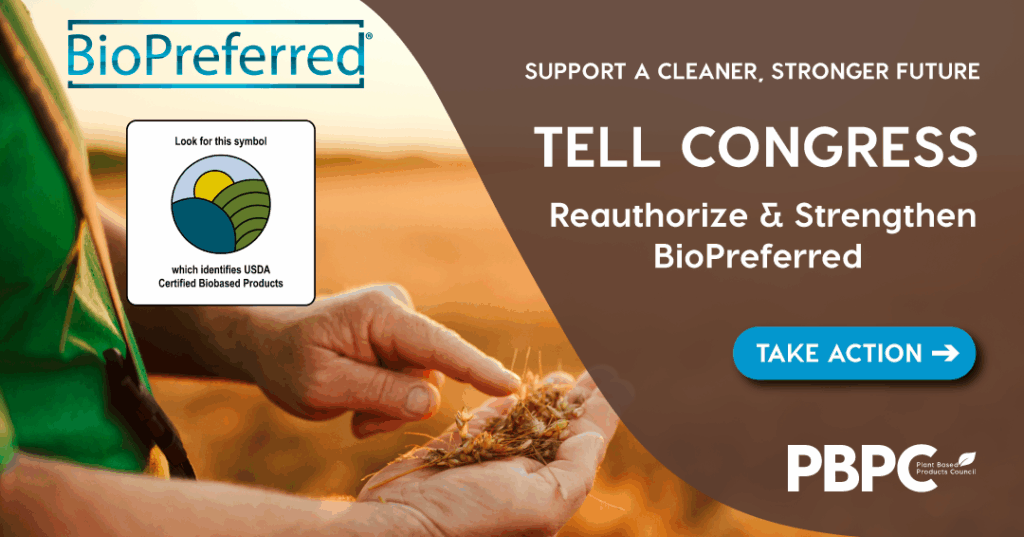 PBPC urges Congress to act swiftly to protect the BioPreferred Program, providing the long-term stability and resources needed to advance U.S. biomanufacturing, expand market access for American farmers, and cement U.S. leadership in the ag bioeconomy.