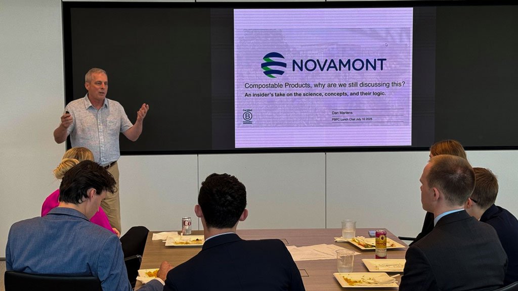 Dan Martens of Novamont gave a presentation on compostable products and composting.