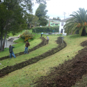After marking your contour lines, you will need to actually dig the ditches. How much effort this requires depends on the equipment you have available. If all you have is a pickax and shovel, it will require significant work, but it will be otherwise cost-free. A ditch witch or a tractor with a similar attachment will reduce your workload significantly. A small excavator will make large ditches quickly.