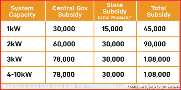 - State Subsidy: ₹30,000 for a 3kW system