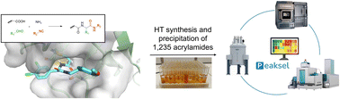 We developed an efficient Ugi-based route to 1200 acrylamides, delivering millimolar quantities of pure precipitated products. Library quality was verified by 1H NMR, UPLC-UV-MS, and AEMS, yielding a sustainable drug-discovery-ready set.