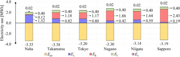 “On the day of measurement, the total electricity generated by the solar panels was approximately 4.2 kWh, whereas the air conditioner consumed approximately 8.3 kWh,” the research team said. “Although the power-generation efficiency varied with the surface temperature of the solar panels, the average power-generation efficiency during the day was approximately 16.0%, which was lower than the catalog-specified value of 19.3%.”