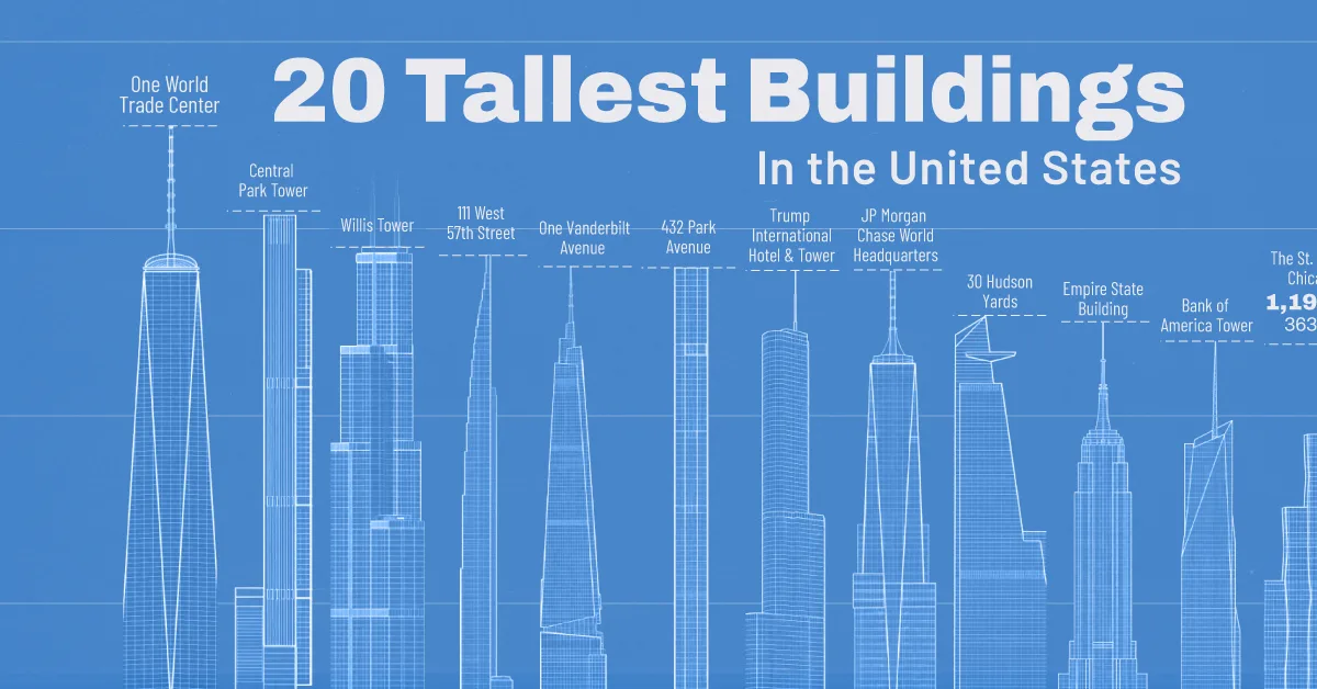 This infographic ranks the 20 tallest buildings in the U.S. based off data from the Council on Vertical Urbanism (formerly known Council on Tall Buildings and Urban Habitat).