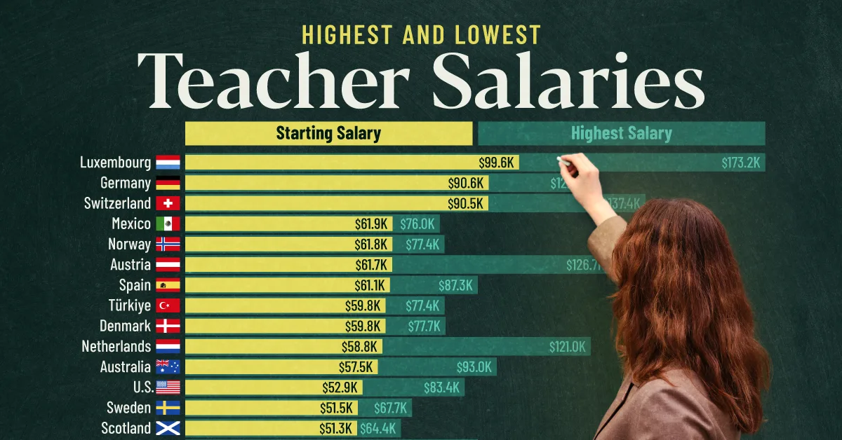 Which countries pay teachers the most? This global comparison reveals major gaps in educator salaries worldwide.