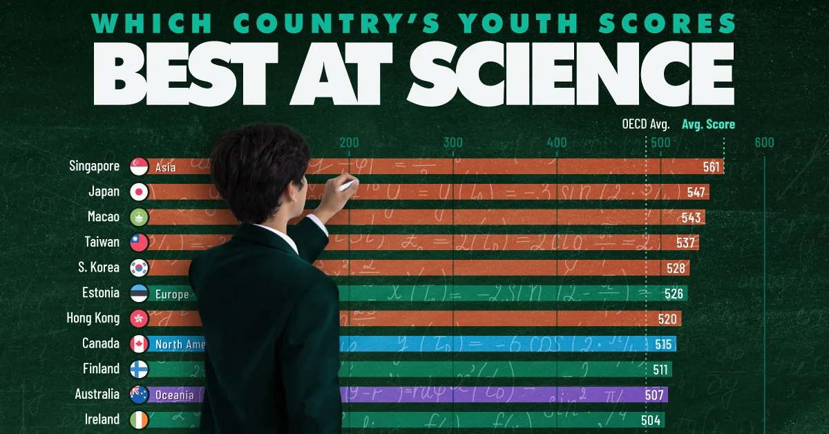 The latest results reveal a clear global leaderboard in science performance, with top countries scoring well above the OECD average of 485.
