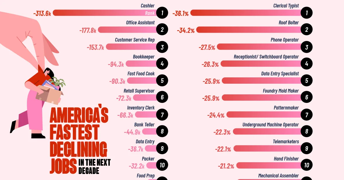 Ranked: The U.S. Jobs Losing the Most Workers by 2034