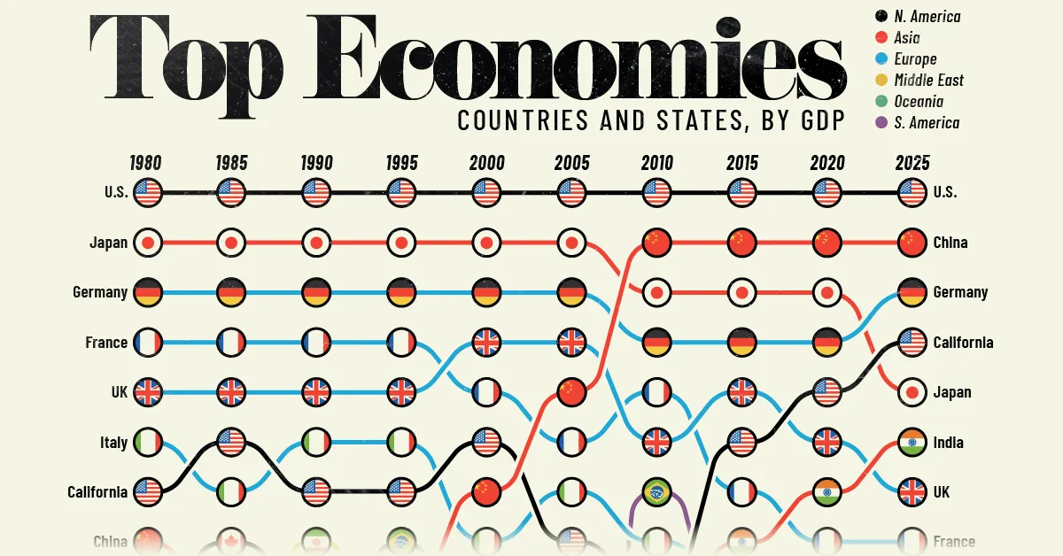 - Source: https://www.visualcapitalist.com/ranked-the-worlds-top-economies-including-u-s-states-1980-2025/