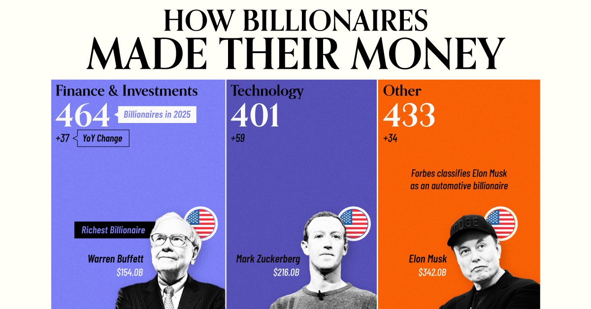 - Source: https://www.visualcapitalist.com/ranked-top-sources-of-billionaire-wealth-by-industry-in-2025/
