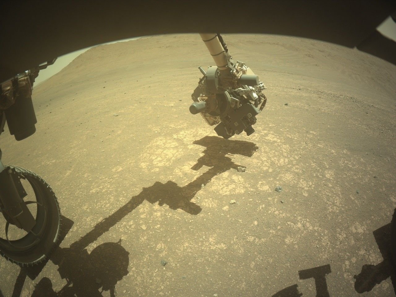 Perseverance has been busy exploring lower “Witch Hazel Hill,” an outcrop exposed on the edge of the Jezero crater rim. The outcrop is composed of alternating light and dark layers, and naturally, the team has been trying to understand the makeup of and relationships between the light and dark layers. A few weeks ago, we sampled one of the light-toned layers, which we discovered was made up of very small clasts, or fragments of rocks or minerals, at “Main River.” Since then, we have learned that the dark layers tend to be composed of larger clasts compared to the light layers, and we’ve been searching for a place to sample this coarser-grained rock type. Sometimes, these coarser-grained rocks also contain spherules, which are of great interest to the science team because they provide clues about the process that formed these layered rocks.