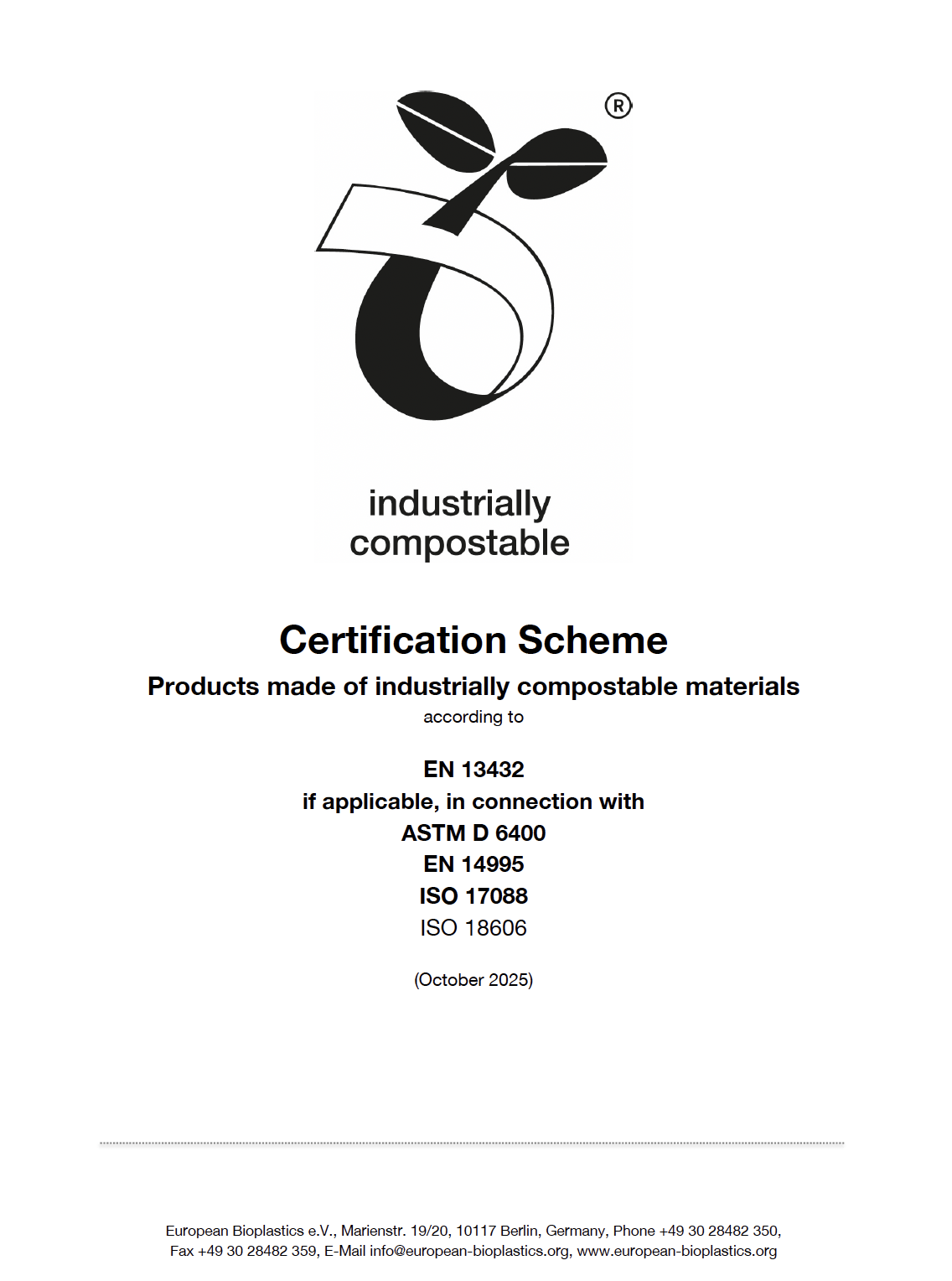 In addition to the Certification Body’s general terms and conditions, this Certification Scheme provides a basis for organisations which supply products made of compostable materials to label their products with the compostability mark, the so-called “Seedling”. This proves that their products fulfill the requirements of EN 13432 as well as, if applicable, the additional/simultaneous requirements in EN 14995, ISO 18606, ISO 17088 and/or ASTM D 6400.