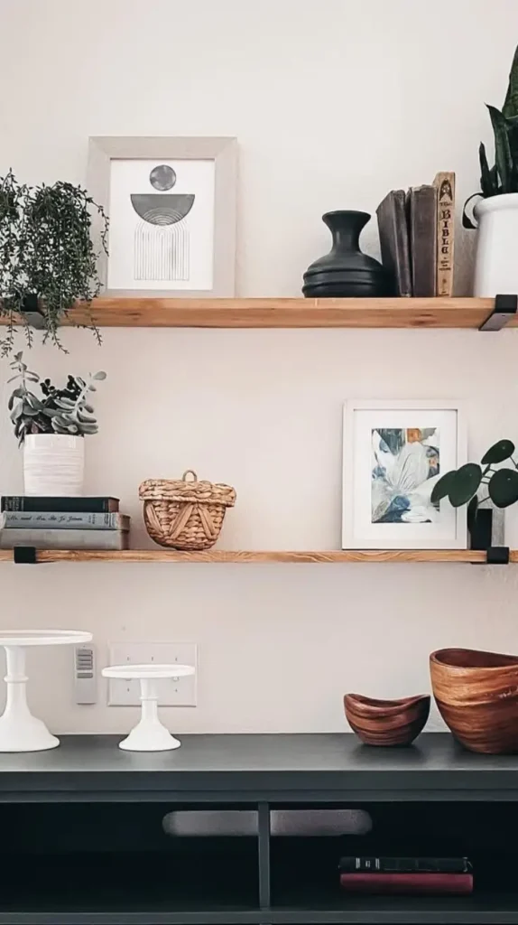 - Floating shelves: Perfect for a minimalist, modern look. They appear weightless and keep walls sleek.