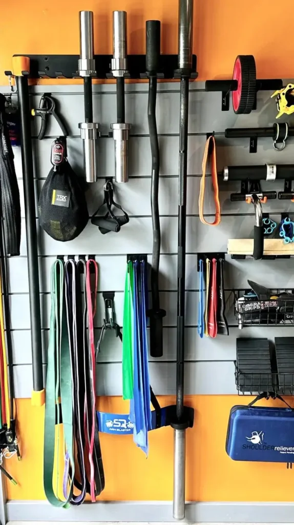 Technology is helpful, but overloading a small gym room with screens, apps, or complicated devices can create distraction instead of motivation. The tech-light training space focuses on simplicity: a basic timer, music source, and minimal tracking tools are all that’s needed. This keeps the focus on movement, breathing, and intentional practice rather than numbers or notifications.
