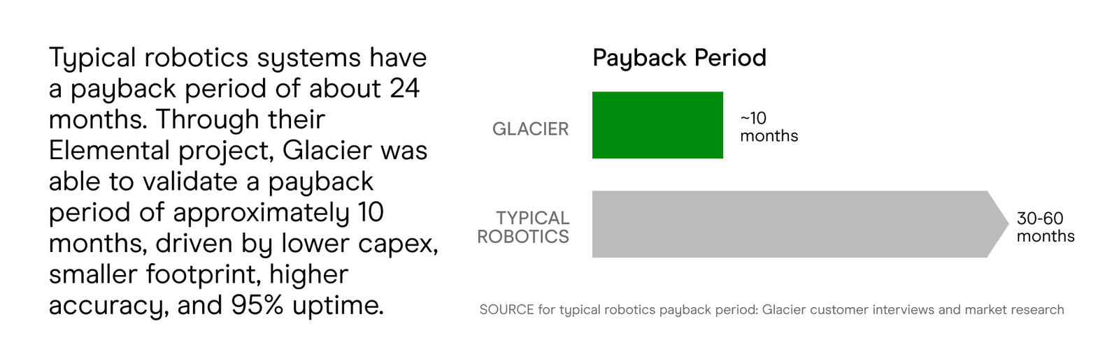 What also stood out to Elemental about Glacier was the fact that they don’t just deploy machines—they deeply understand the on-site needs of MRFs, and the people who power them. Co-founders Rebecca Hu-Thrams and Areeb Malik have spent thousands of hours on-site at MRFs, talking with executives, operators, and frontline sorters. One of the major insights that evolved from these conversations is that most equipment vendors don’t give MRFs the right to repair—waiting for parts and repairing equipment can result in weeks of downtime and lost revenue. By training facility staff to operate, maintain, and troubleshoot the robots themselves, Glacier is building local knowledge and ownership of the technology, while making it safer and easier for recycling facilities to adopt.