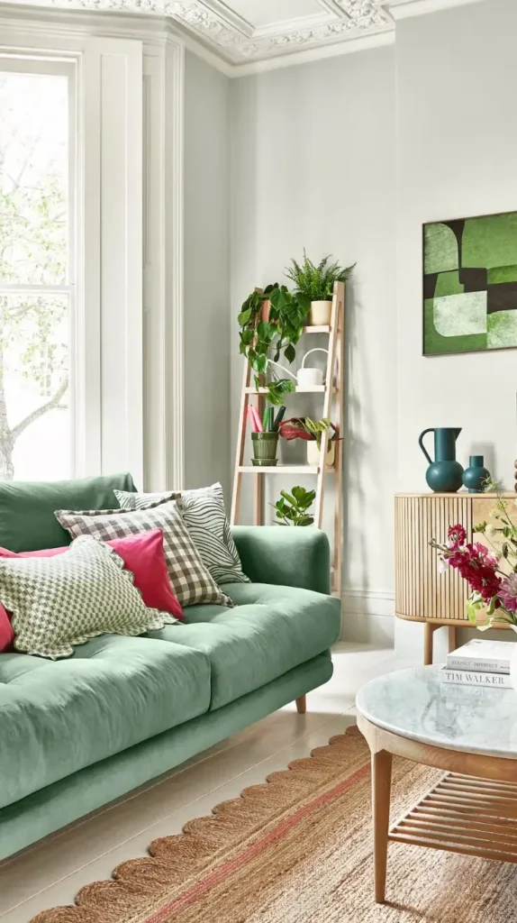 Placement matters. Greenery near windows feels natural, while plants placed beside furniture soften hard lines. Spring living room decor feels incomplete without this connection to nature, as plants help create a calming environment that feels grounded, welcoming, and emotionally refreshing.