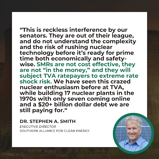 The post Suffering from Delusions of Nuclear Grandeur and Amnesia, TN Senators Recklessly Step into TVA Leadership appeared first on SACE | Southern Alliance for Clean Energy.