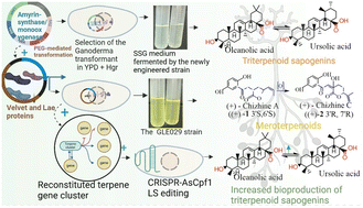 Metabolic engineering of a medicinal mushroom for sustainable bioproduction of oleanolic and ursolic acids and meroterpenoids. Oleanolic and ursolic acid production was enhanced by reconstructing the terpenoid backbone biosynthetic pathway.