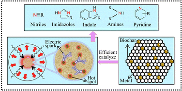 Metal-modified biochar catalysts induce microwave–metal synergistic effects during polyurethane–biomass co-pyrolysis. These effects enhance thermal and electromagnetic interactions, promoting the selective formation of nitrogen-containing chemicals.