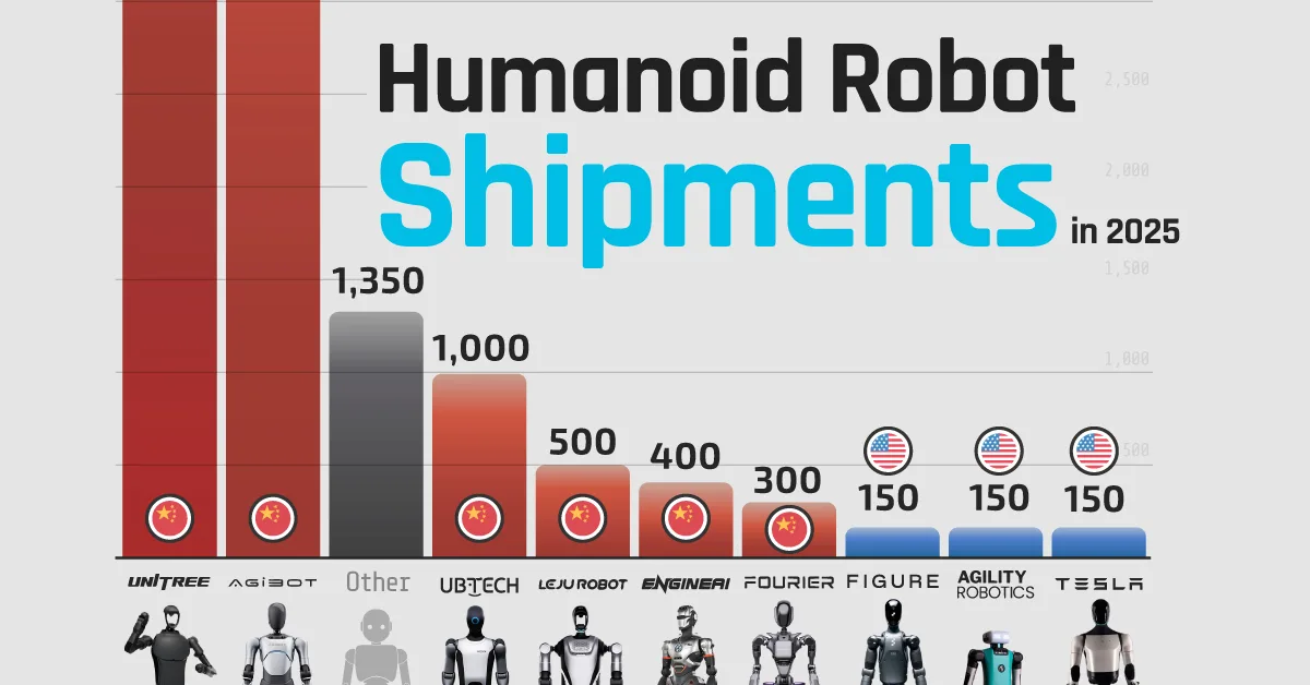 Ranked: The Companies Shipping the Most Humanoid Robots