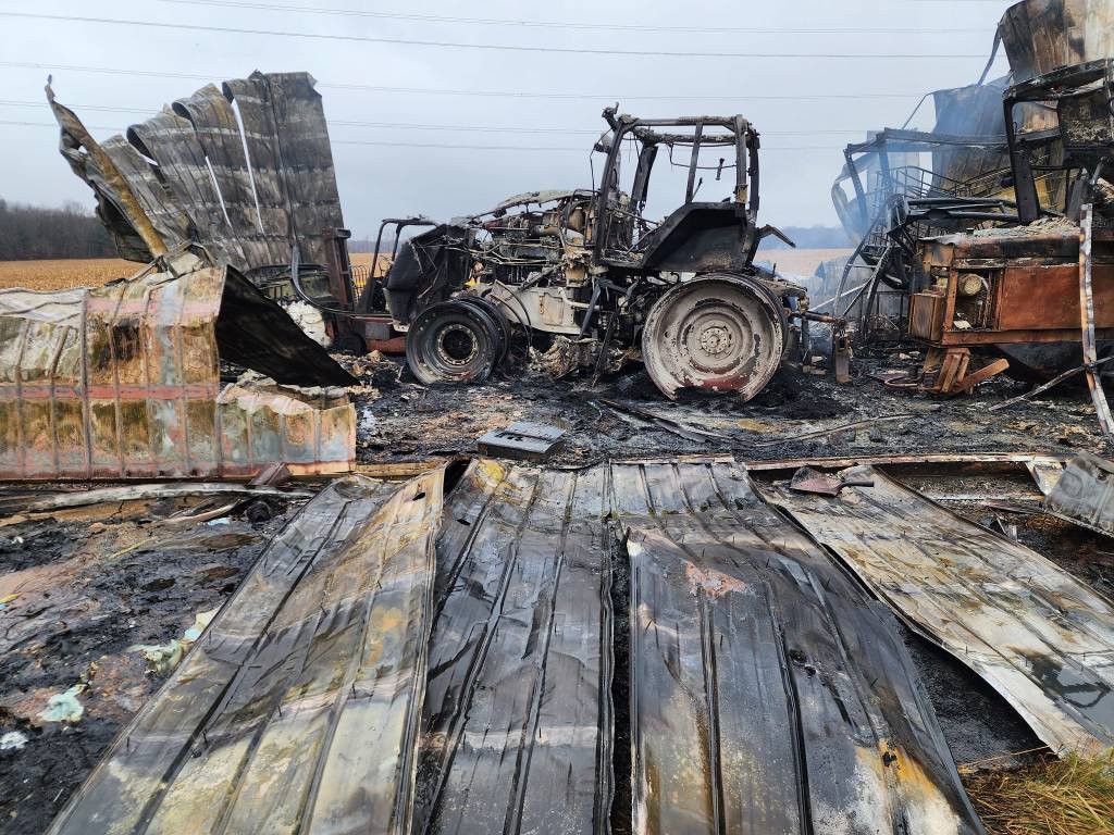 The firefighters arrived but could do nothing. Water on the barn would mix with the chemicals and make a bigger mess. Instead they kept the surrounding infrastructure wet and cool so nothing else caught fire. Other than trying to pump up some of the chemicals, there was nothing anyone could do. Except watch it burn. Watch the tractors go up in flames and melt (literally). Watch the plastic containers of fertilizer melt to the ground. Watch the preparations for the 2024 season go up in smoke.