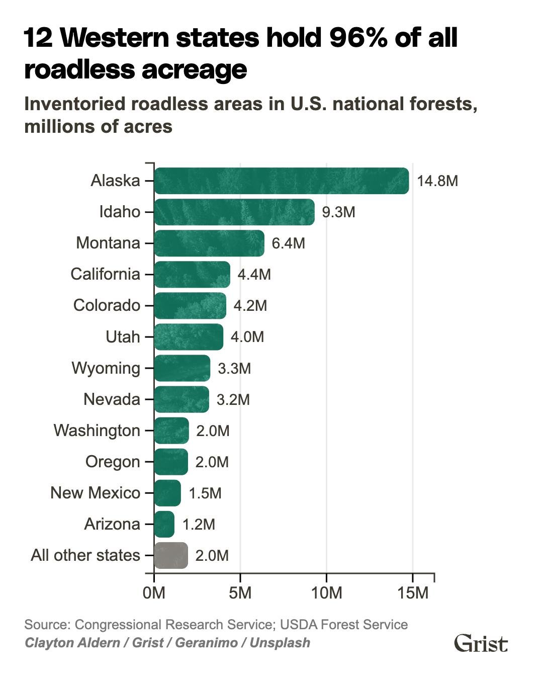 The policy safeguards about one-third of all national forest land. Ninety-five percent of it lies in 10 Western states where vast, contiguous forests remain the norm. East of the Mississippi River, however, the policy shields smaller, more vulnerable parcels. In Shawnee National Forest in Illinois, for example, just 4,000 acres are road-free; across the Southeast, the total is roughly 416,000.