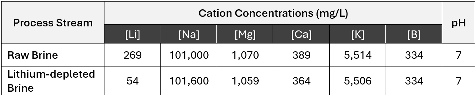 Table 2: Cation concentrations at the Kachi Demo Project with Gen 3 Lilac IX.