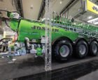 Joskin exhibited its Xtrem triple axel tanker with redesigned dorsal boom. Equipped with bigger 10” (250mm) hoses this machine fills faster and is more efficient in the field. A turbo-filler further boosts the filling flow, significantly reducing pumping times.