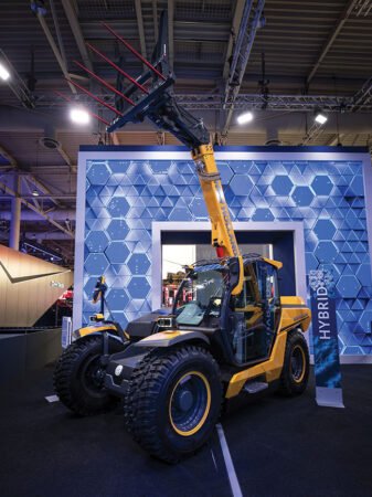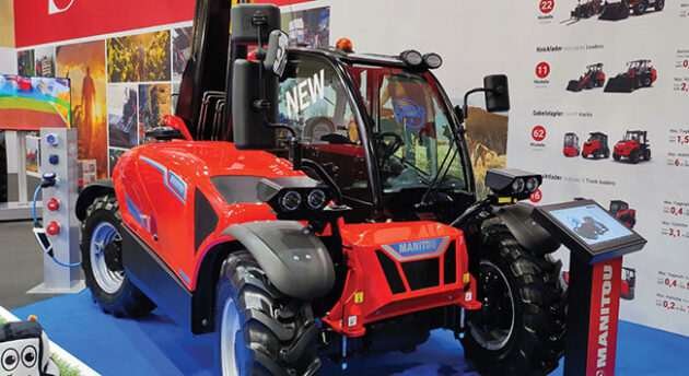 Manitou unveiled its first electric telehandler for agriculture at Agritechnica. It is powered by a 35 kWh lithium ion battery, which can work for five hours in a typical farmyard, says the manufacturer.