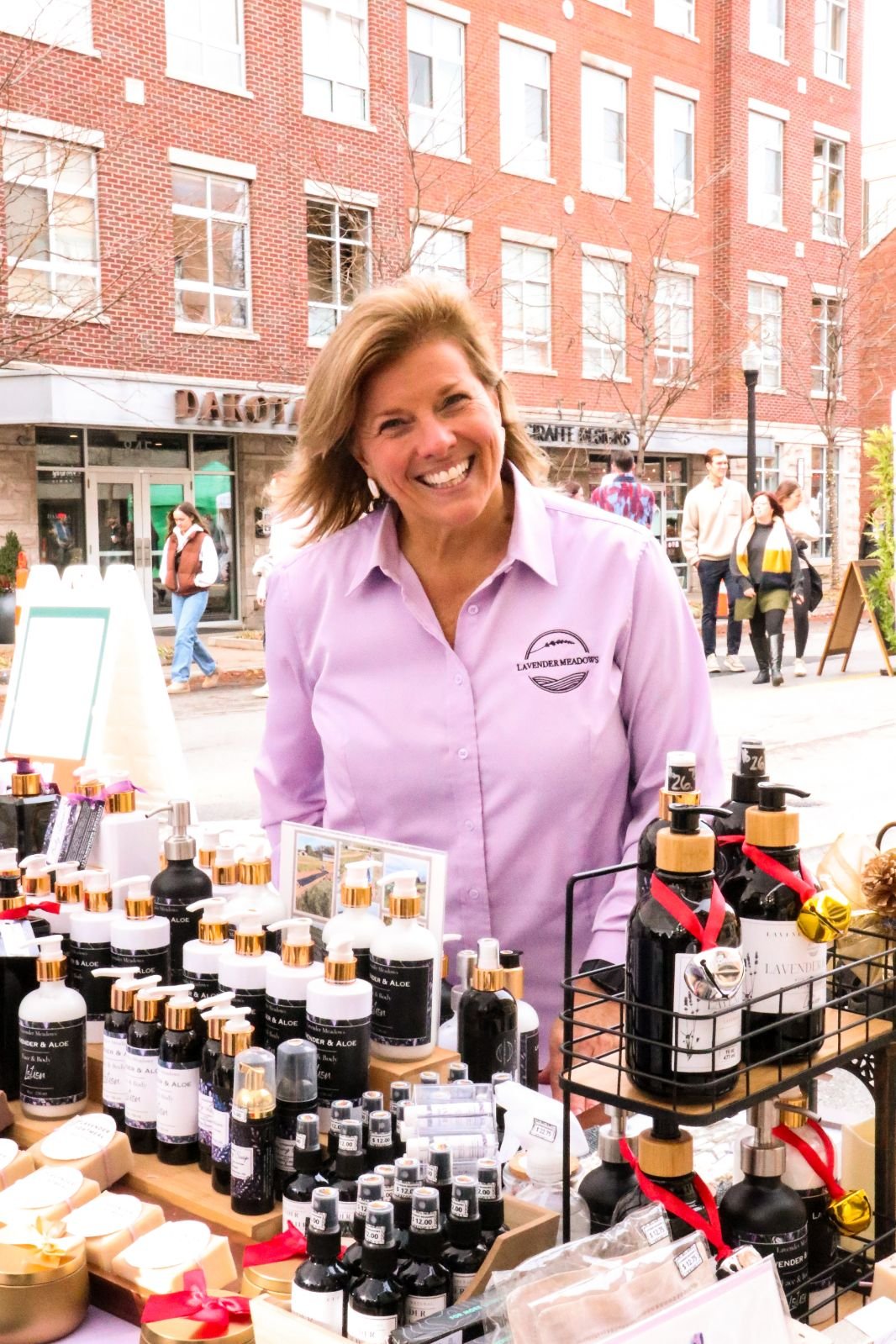 Being a lavender farmer is a physically challenging adventure. During a season of life when most people are cutting back and relaxing, I launched this hugely physical and financially challenging farm. I love being a 63-year-old female farmer because it keeps me active and mentally healthy. I always tell everyone there is nothing better than “hands in the dirt, and butt in the air.” Being a woman, I feel I am more nurturing with each plant and am not afraid to sacrifice my leisure for the good of my crop. As a registered nurse who spent many years in medical sales, I feel this new phase of life is one meant to be shared with others who may need encouragement by engaging their senses. My lavender field nourishes me and others by the sight of its gorgeous blooms, its fragrant scents, the hum of the pollinators, and the feel of the dirt and plants in my hands. As a woman in agriculture, I willingly offer encouragement to others and am confident that my role is that of the steward and ambassador of the field. To help support my farm I hand-craft many body care products from the essential oil I distill after hand harvesting my plants. At vendor events where I sell these products, I have the opportunity to share my “story” with women who may never challenge themselves outside of their comfort zone or take a leap of faith. I help educate them with lavender planting advice, choosing healthier body care products, and encouraging them with the joy and love that overflows from being a lavender farmer.