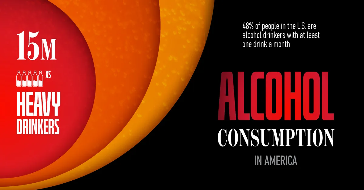 Heavy alcohol users—those who binge drink on at least five days in the past month—number 14.5 million in America. This represents 5% of the total population above 12 years old and 10.8% of alcohol users.