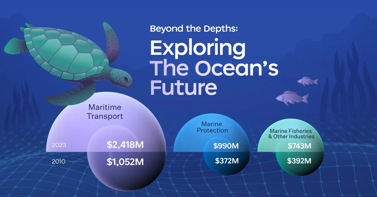 Financial commitments to ocean-related initiatives doubled between 2010 and 2023. Morgan Stanley projects even greater potential for the future with over $3 trillion in ocean investment opportunities to add to the global economy.
