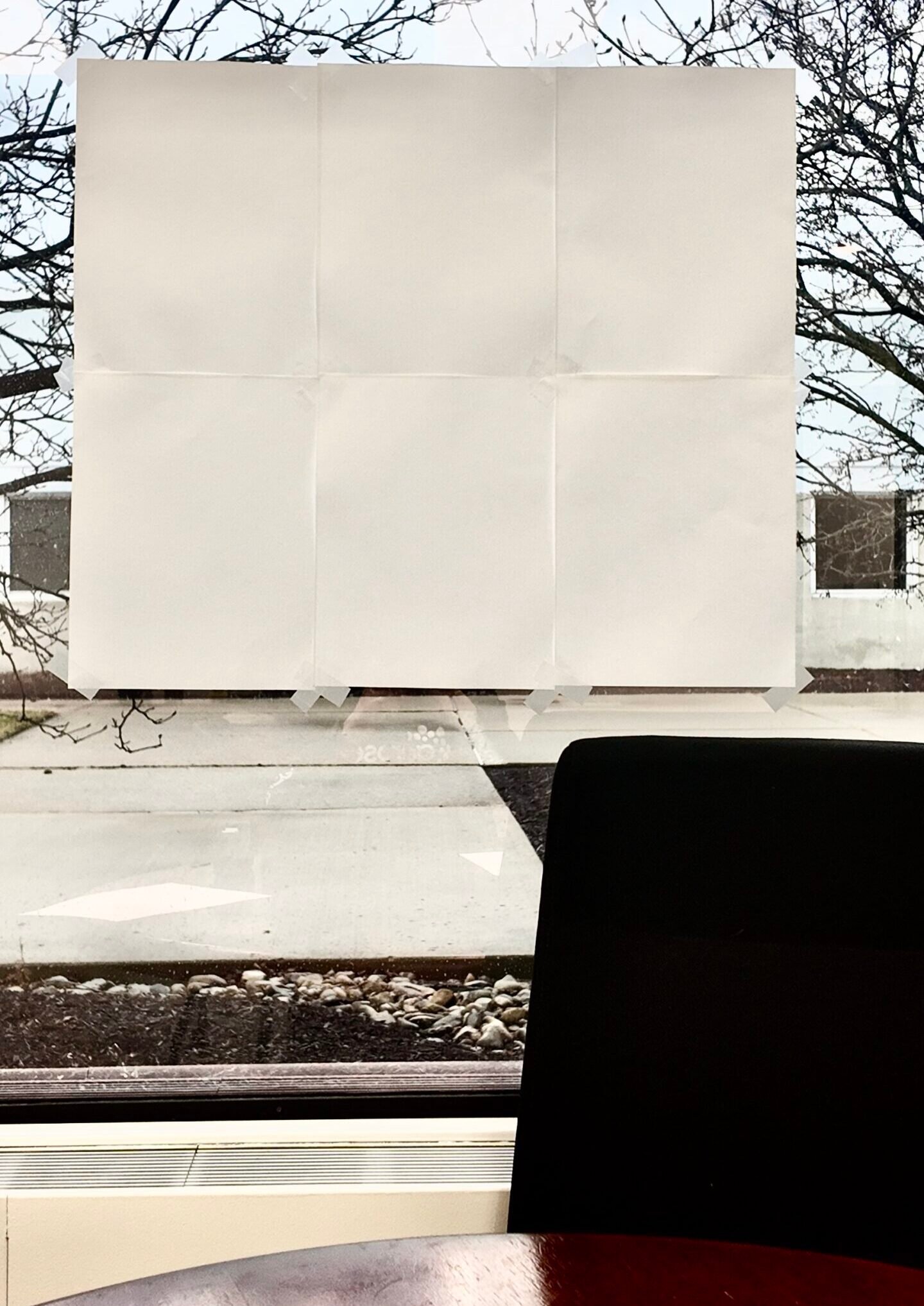 Six pieces of 8.5′ x 11″ paper representing the total sq inches of air leakage from the building