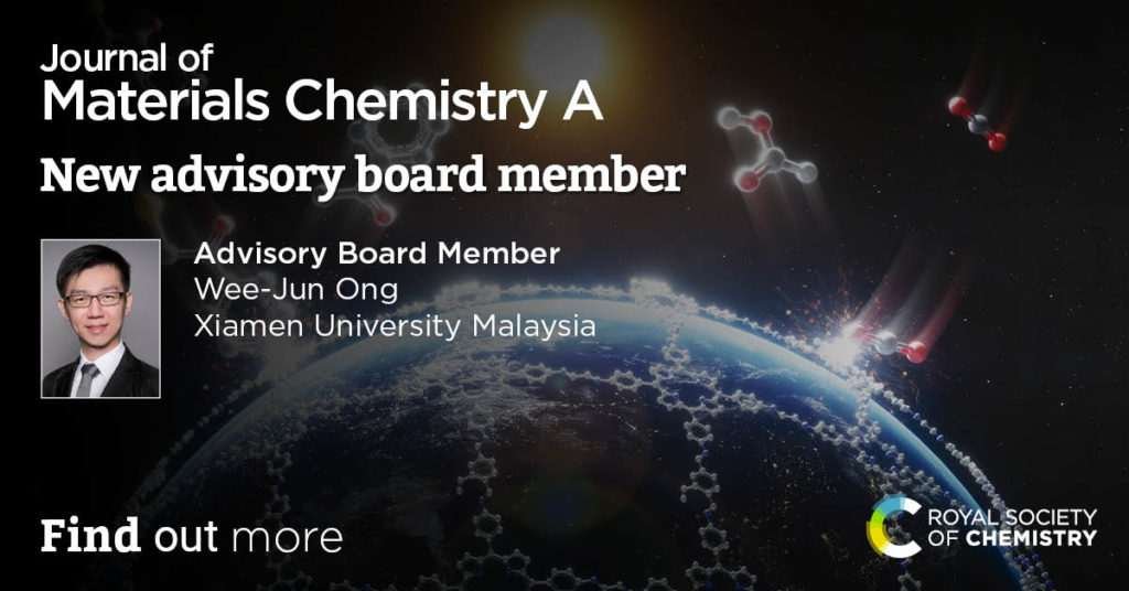 We are delighted to welcome Professor Wee-Jun Ong (Xiamen University Malaysia) to the Advisory Board of Journal of Materials Chemistry A.