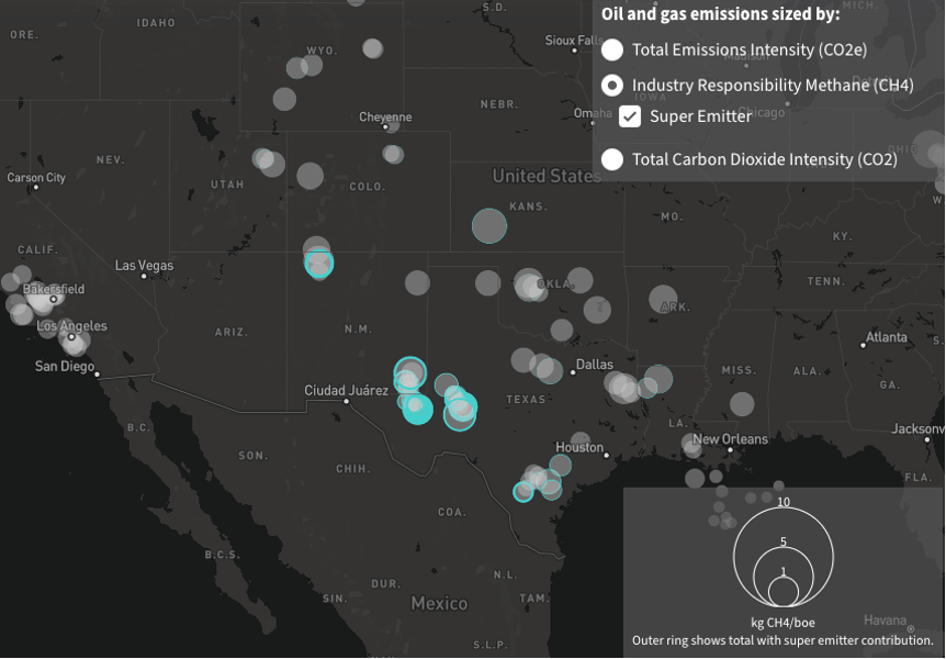 Texas super-emitters stand out on the map of US oil and gas methane intensities