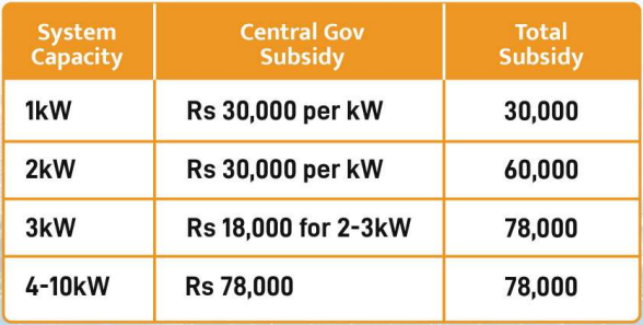 - Up to 3 kW capacity: ₹78,000 total subsidy